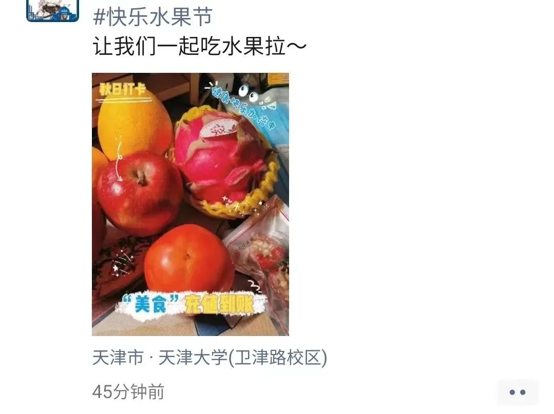 TJU's Fruit Festival is the trend topic at the Wechat Moments of TJUers.