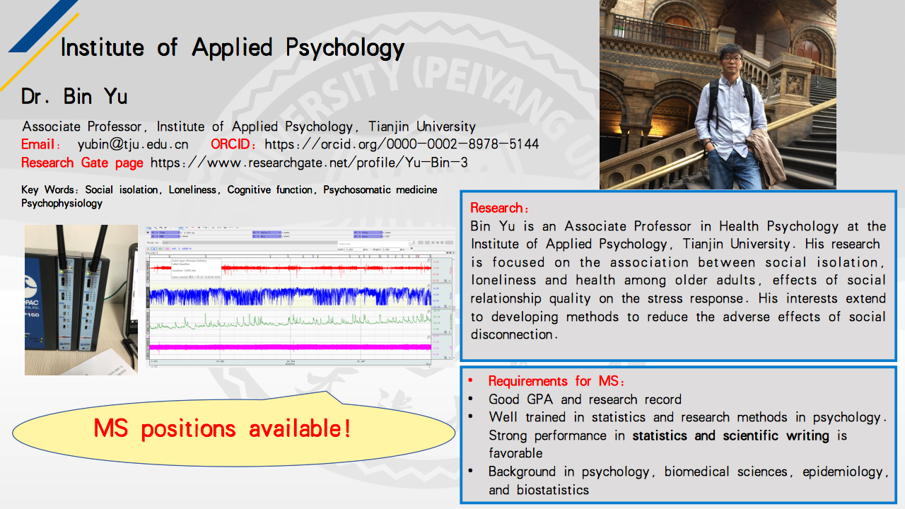 【Welcome to contact for acceptance letter】 Associate Professor Yu Bin