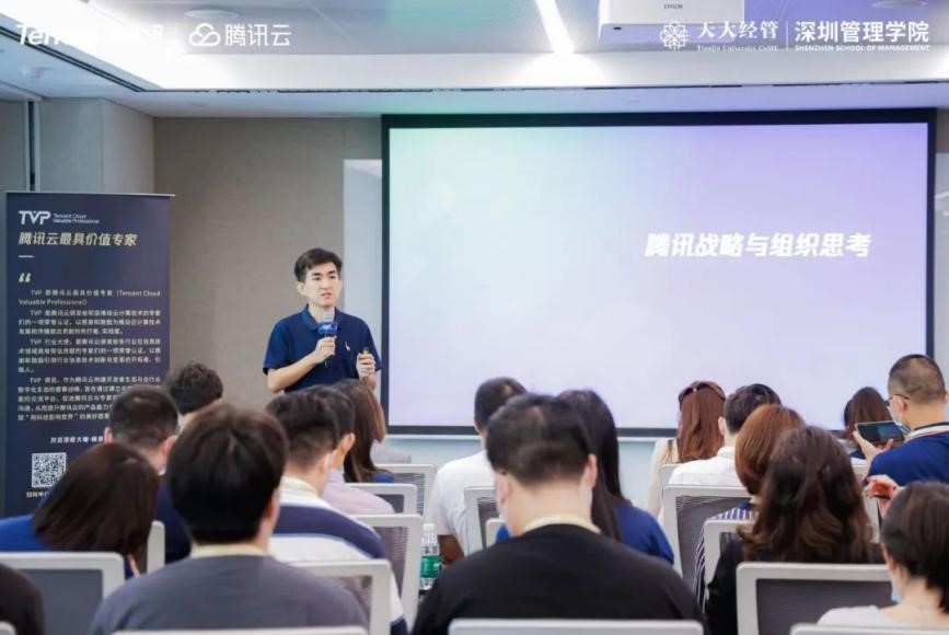 Mr. Yu, Tencent's management consulting director, gave a lecture entitled "Strategic thinking and practice of enterprise digital transformation". He shared that Tencent, as a digital "native" enterprise, has actively entered the second half of the Internet through numerous restructuring of its technology, business and organization. He also elaborated on the exploration and practice cases in which Tencent joined hands with many partners to promote the realization of high-quality development under the concept of openness, sharing and innovation.