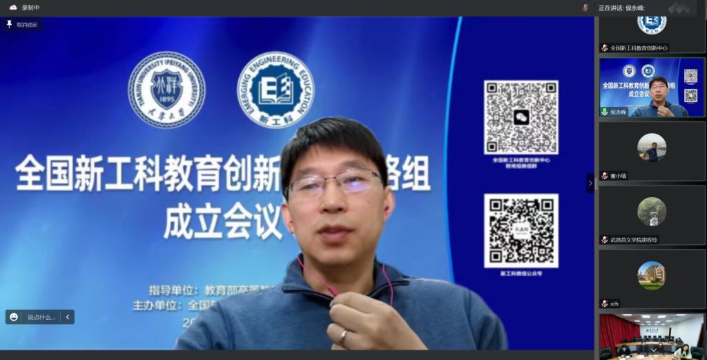 On March 3, 2023, under the guidance of the Higher Education sub-sector of the Ministry of Education, the founding meeting of the contact group of National Center for Innovation in Emerging Engineering Education took place online. In order to further improve the governance system of the National Center for Innovation in Emerging Engineering Education, advance the governance capacity, and promote the high-quality development of the emerging engineering construction, a leading group of the National Center for Emerging Engineering Education and Innovation has been established. The meeting was chaired by Xia Shuqian, deputy director of the Academic Affairs Office of Tianjin University and director of the Office of the Emerging Engineering Education Center. Many distinguished guests attended the meeting, including educational experts and cadres in emerging engineering education from more than 300 colleges and universities and relevant associations. Several of them also delivered a speech, namely, Hou Yongfeng, a top-level researcher of the Science and Technology Office, Higher Education sub-sector of the Ministry of Education, Gu Peihua, academician of the Canadian Academy of Engineering and director of the Emerging Engineering Education Center of Tianjin University, and Ma Xinbin, vice president of Tianjin University.