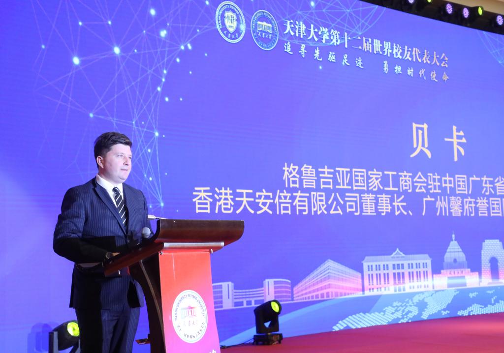 Bekar Mikaberidze from Georgia graduated from Tianjin University’s School of International Education in 2005 as a Chinese language learner. He shared with the audience his life at TJU. As the founder of One Belt One Road Georgian Business House, he is devoted to enhance the two countries’ cooperation in business, education, culture exchanges, and science and technology development.