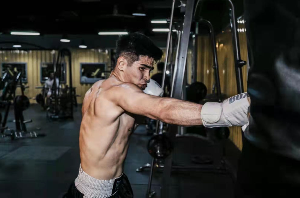 Muhammet is practising boxing.