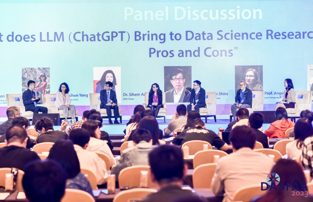 A panel discussion was held under the theme "What does LLM (ChatGPT) Bring to Data Science Research and Education? Pros and Cons". Professor Chen Lei from Hong Kong University of Science and Technology (Guangzhou) and Professor Yang Xiaochun from Northeastern University are co-chairs of the panel discussion. Four keynote speakers Dr Sihem Amer-Yahia, Prof Kyuseok Shim, Prof Angela Bonifati and Prof Xu Jianliang, as well as a special guest Prof Li Guoliang from Tsinghua University, attended the discussion, elaborating on the impact of the Language Large Models represented by ChatGPT on data science and education from different perspectives with vivid cases.