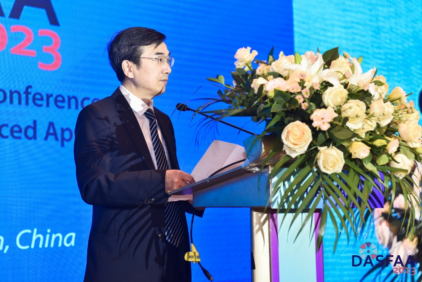 Yang extended a warm welcome to all the experts and representatives attending the meeting and made a brief introduction to Tianjin University. Chen Lei, Chair of the DASFAA Steering Committee and Professor of Hong Kong University of Science and Technology (Guangzhou), and Feng Zhiyong, General Chair of DASFAA 2023 and Professor of College of Intelligence and Computing, Tianjin University, addressed the conference respectively. They called on all pundits and scholars to make joint efforts to promote further development of database system research and application and hoped that this Conference would be a gathering for the participants to enhance understanding, strengthen cooperation and inspire creativity. Wang Xin, Chair of the DASFAA 2023 Program Committee and Professor of College of Intelligence and Computing, Tianjin University, presided over the opening ceremony and introduced the proceedings and accepted papers of the Conference.