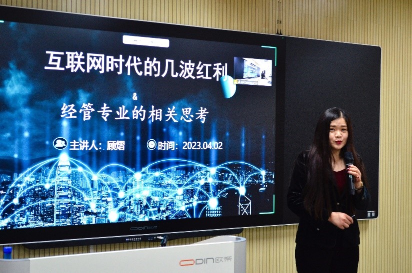The speech mainly focused on the development stages of the Internet, the representatives of each stage and the waves of dividends they brought. She also put forward her thoughts on the field of management and economics and her expectations and hopes for her younger schoolmates.