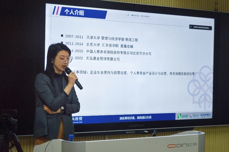 From the current situation of China's aging population to the status and problems of China's pension system, and finally to the promising trend of individual pension, she comprehensively introduced the past, present, and future development trends of China's pension system.