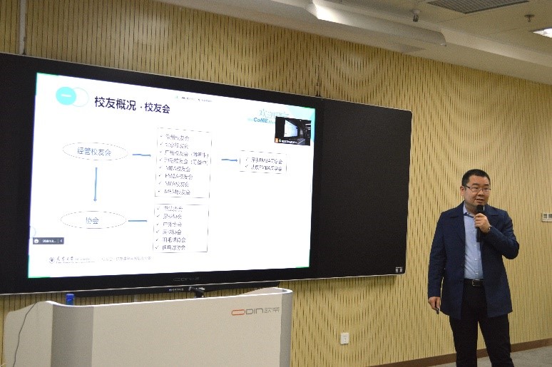 Li Wenqiang introduced the alumni work. He pointed out that "Connection, Empowerment, Co-creation, and Achievement" are the consistent "CECA work system" of the Alumni Office. The Alumni Office attach much importance to the communication between alumni and the University. The "Alumni Home of CoME" WeChat public account regularly send alumni work briefings, birthday greeting cards, and congratulatory cards and letters to alumni. A lifelong learning and lifelong service system is established to integrate various resources inside and outside the College, jointly promote alumni work, and help the development of the College.