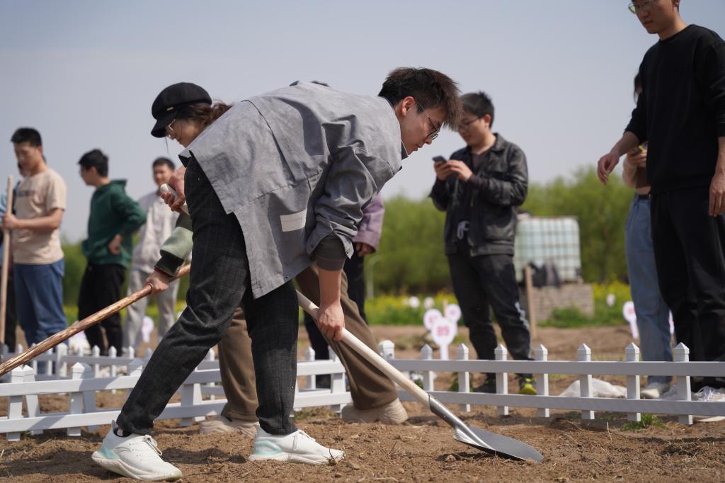 In the 10-acre crop planting base on Peiyang Campus, 12 patches of land were assigned to students from 12 schools to farm on. Under the guidance of the “Farming Supervisor”, students were conducting field work about crop planting. They used shovels, plows and harrows to turn over the soil, level the land, sow the sees, and water the land. They were taught about flower planting, growth habits and care methods.