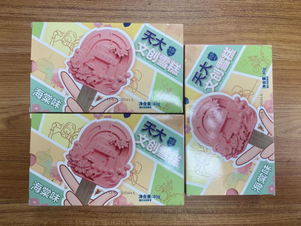 The design team recreates the fragrancy of crabapple in the memory, which is definitely a distinctive flavor. If you unpack it, a fresh aroma will reach your nose and refresh your heart. Taking pictures of the ice cream bar and the landmarks in TJU and posting them on your Wechat Moments, you can show your friends the beauty of TJU.