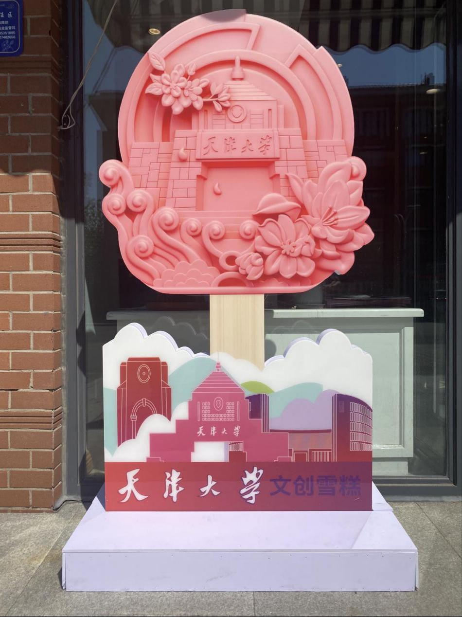 Characteristics of TJU are included in the design of the ice cream bar: the East Entrance of Weijin Road Campus and Xuanhuai Square of Peiyangyuan Campus are intertwined and integrated back and forth, while the blooming crabapple flowers are at the forefront. Such a delicious and delicate dessert!