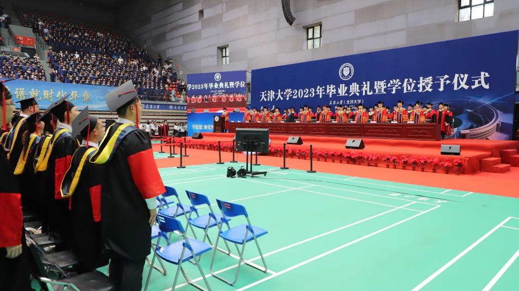 On June 20, 2023, the commencement and degree-granting ceremony for the Class of 2023 postgraduates was held in the sports stadium of Tianjin University's Weijin Road Campus. Among postgraduate students, 516 graduates received doctoral degrees on this day, and 3194 received master's degrees. In addition, 106 PhDs and 374 M.A. graduates from the class of 2020–2022 are invited to return to campus to finally have the ceremonies they missed.
