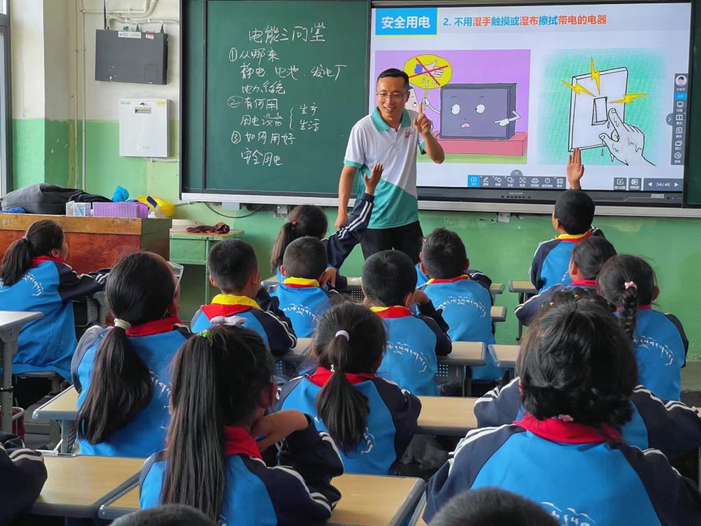 Prof.Chen Xiaolong, first prize winner of the National College Young Teachers Teaching Competition was one of the mentors of the volunteer group. He delivered a lecture titled Three Questions about Electrical Energy to students at the First Primary School in Samdrub Tse District. He explained the knowledge related to batteries, power plants, and electrical systems, allowing the children to have a clear understanding of where the electricity that powers their homes comes from. “I hope to enhance the children's awareness of electrical safety from a safety perspective,” said Chen.