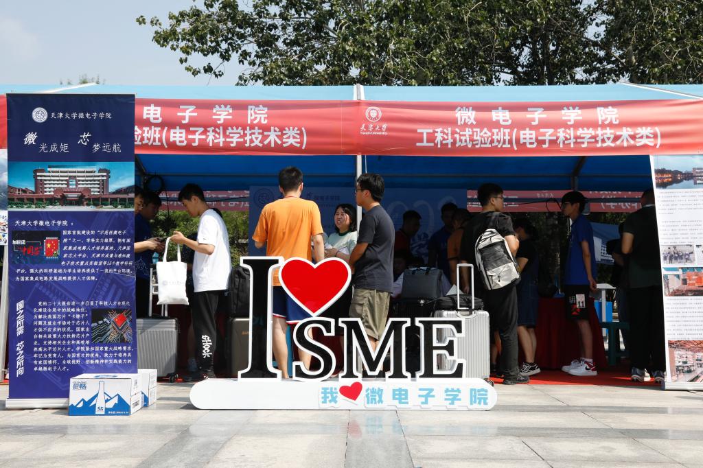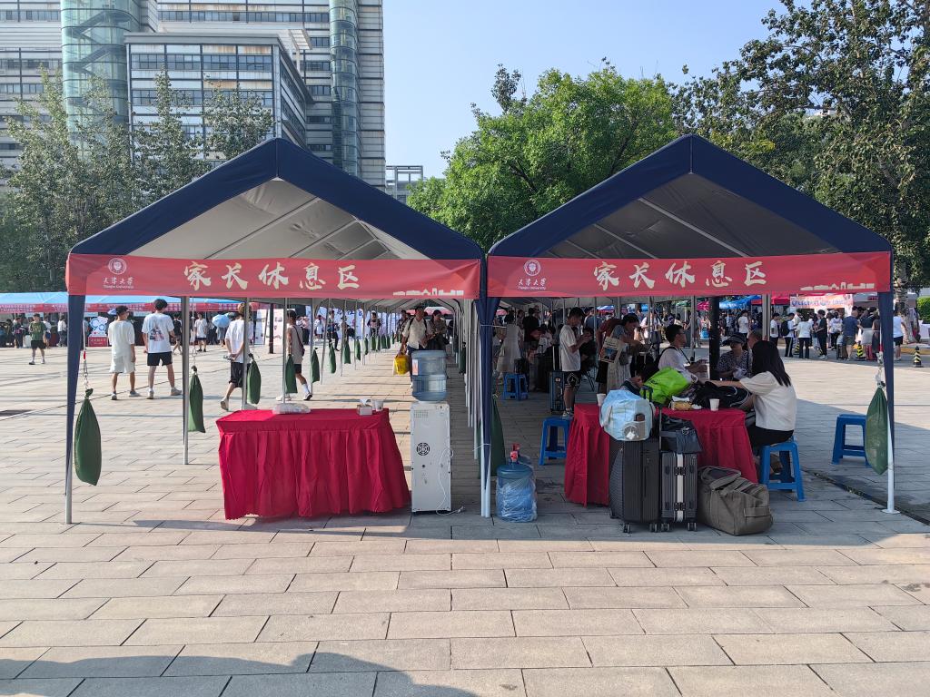 "A hearty welcome, 2023 incoming students" A striking welcome sign graces the campus. With the aim to make it easier for students from all over the country to adjust to the school smoothly, the school has established welcome sites at Tianjin railway stations and the airport.
