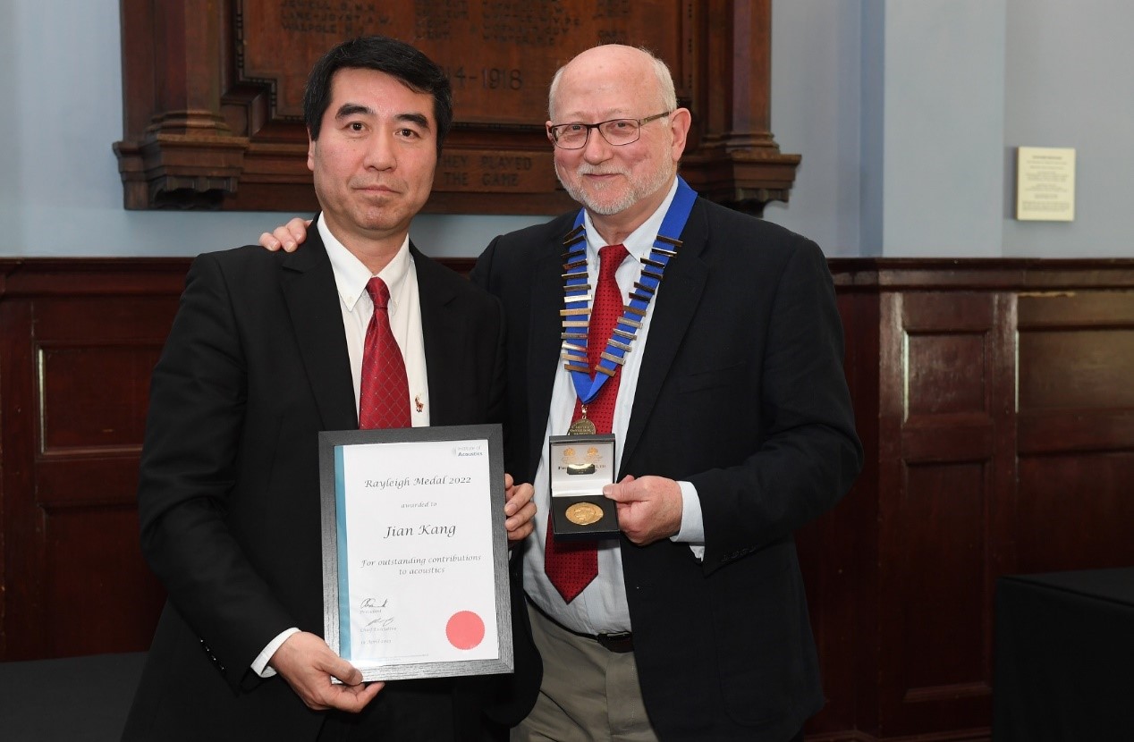 Professor Kang Jian, Honorary Dean of Tianjin University’s School of Architecture, Fellow of the Institute of Acoustics and also of the Royal Academy of Engineering, and a Member of The Academy of Europe, was awarded the Rayleigh Medal by the Institute of Acoustics.