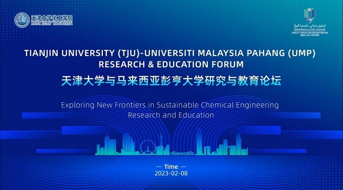 Tianjin University-Universiti Malaysia Pahang Research and Education Forum was held by the School of Chemical Engineering and Technology of Tianjin University and the Faculty of Chemical and Process Technology Engineering of Universiti Malaysia Pahang on February 8, 2023. The theme of the forum is “Exploring New Frontiers in Sustainable Chemical Engineering Research and Education”.