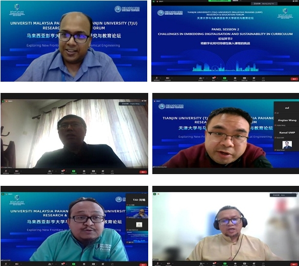 The second part of the forum was chaired by Senior Lecturer Ashwin Charles Benedict from the Faculty of Chemical and Process Technology Engineering of Universiti Malaysia Pahang. The challenges of integrating digitalization and sustainability into the curriculum was discussed by Professor Wang Jingtao and Senior Engineer Xiao Xiaoming from the School of Chemical Engineering and Technology of Tianjin University, and Professor Ts. Dr. Kamal Bin Yusoh and Associate Professor Ir. Dr Mohamad Rizza Bin Othman from Universiti Malaysia Pahang. The teachers of both sides held heated discussions on digitalization, digitization and digital transformation, digital applications in education, the balance between digitalization and practical experience, human-computer interaction in experimental teaching, construction of a sound digital education ecology, digitalization and artificial intelligence development in chemical engineering, embedding of sustainability in curriculum system, inculcation of sustainable development and the challenges of artificial intelligence towards traditional teaching.