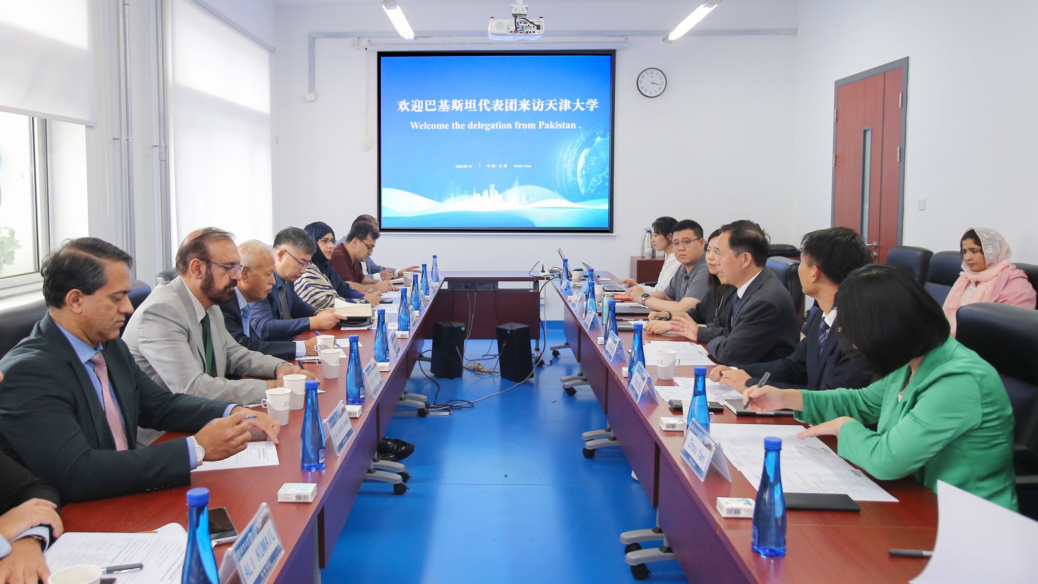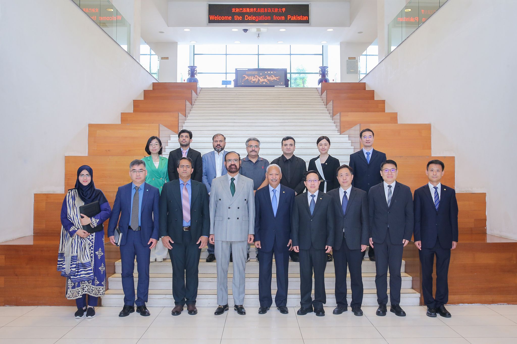 On June 19, Safdar Ali Shah, Deputy Chairman of Pakistan’s Higher Education Commission and Director General of the China-Pakistan Economic Corridor (CPEC), led a delegation to Tianjin University. The group included Zafar Ali Choudry, Executive Vice Chancellor of Faisalabad Medical University; Wang Meng, Secretary-General of the SCO Hospital Alliance; Bilal Haider Shamsi, Executive Chairman of the Belt and Road International Medical Cooperation Center; and Muhammad Shifa Khan, Vice President of the Pakistan Pharmacy Council. Tianjin University President Chai Liyuan and Vice President Ming Dong welcomed the delegation at the Weijin Road Campus, joined by representatives from the university’s various departments.
