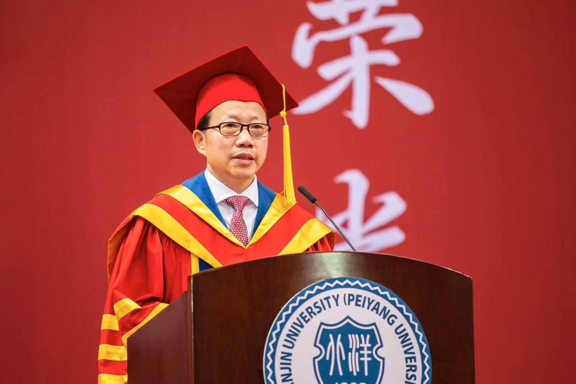 Li Xinggang, a TJU alumnus and member of the Chinese Academy of Engineering, returned to campus to offer words of wisdom. “Your dreams shine brightest when they are part of the broader cause of national rejuvenation,” he said. He encouraged graduates to embrace change, respond to the needs of the times, and find strength in persistence. “Great trees do not grow overnight. Behind every breakthrough is quiet, consistent effort. When faced with challenges, remember the enduring spirit symbolized by TJU’s buildings and the motto ‘Seeking Truth from Facts.’”