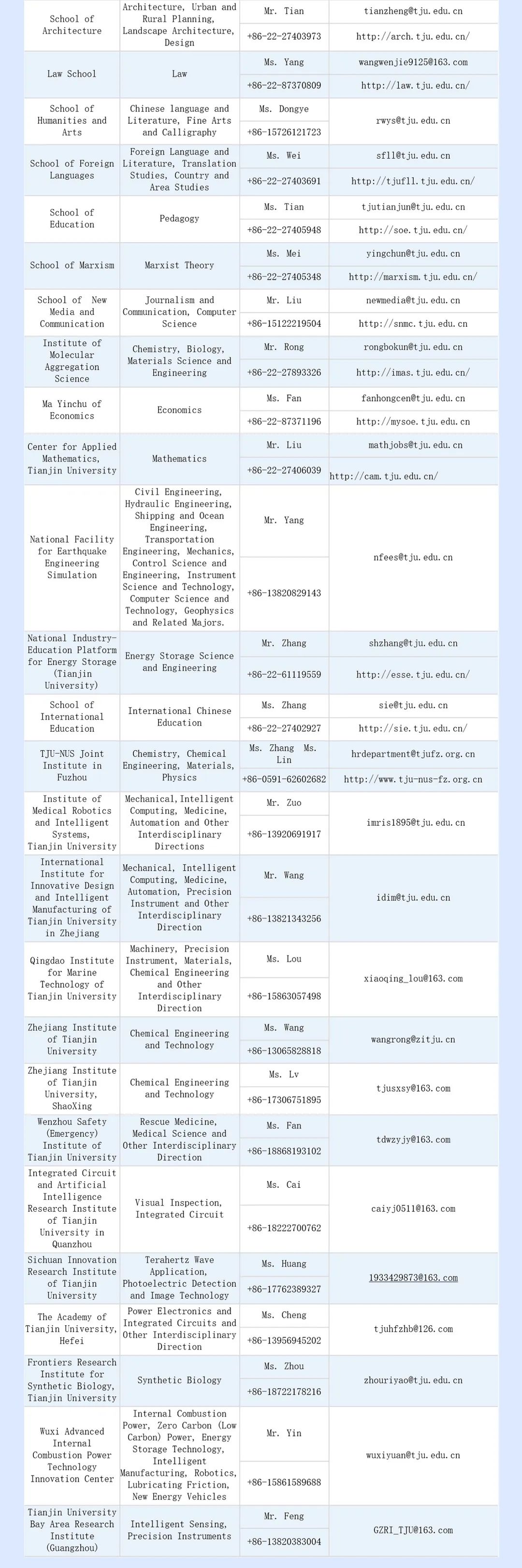 5. Housing and Healthcare: The university provides rotating housing for recruited talents at both the Peiyangyuan and Weijin Road campuses, with comprehensive living and transportation facilities nearby. Peiyangyuan Campus is directly accessible via the subway. Surrounding the campuses are Tianjin University-affiliated hospitals and medical centers, including Tianjin University Central Hospital, TEDA Hospital, TEDA International Cardiovascular Hospital, Jinnan Hospital, Xincheng Hospital, Aier Eye Hospital, Tianjin Hospital, Haihe Hospital, Children’s Hospital, and Tianjin Chest Hospital, ensuring high-quality medical services for faculty and staff.