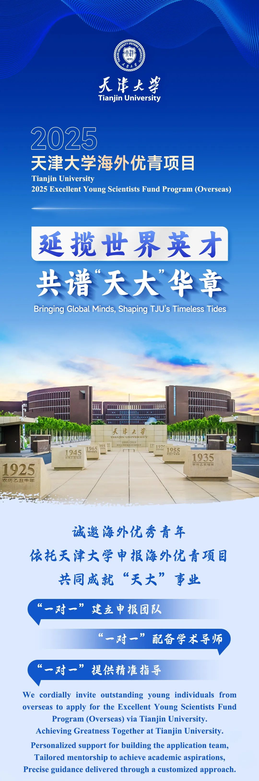 We cordially invite outstanding young individuals from overseas to apply for the Excellent Young Scientists Fund Program (Overseas) via Tianjin University.